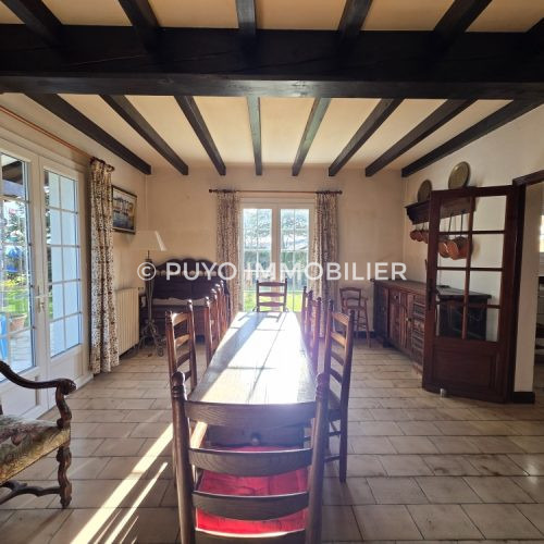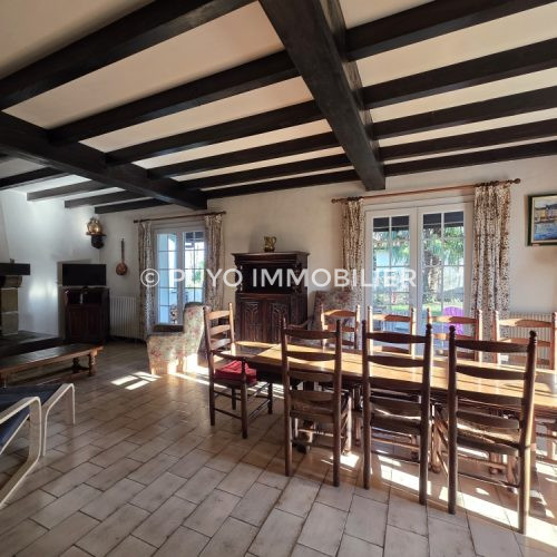 Sur les hauteurs au calme à 5 mn du village, maison traditionnelle d’une surface de 141 m² habitables sur sous-sol complet : elle comprend en rez-de-chaussée une entrée, un séjour avec cheminée insert donnant sur terrasse couverte, une cuisine indépendante, une belle chambre, salle de bain et wc. L’étage se compose de 3 chambres, une salle d’eau avec wc et un dressing. Le sous-sol d’environ 100 m² offre un bel espace pour le stationnement, stockage et un atelier. Elle est implantée sur un terrain de 1316 m² bénéficiant d’une belle vue dégagée. Honoraires TTC à la charge de l’acquéreur inclus : 5,95 % du prix net vendeur (420.000 €)